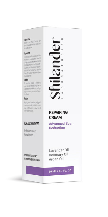 حاوی روغن آرگان ، روغن رزماری،روغن اسطوخودوس و وتامین E کرم ترمیمکننده محصولی برای مراقبت از پوست است که بافت پوست را نیز ترمیم میکنند. از کرم ترمیمکننده شیلاندر با ترکیب روغن های گیاهی برای کاهش جای زخم، بخیه، بریدگیها، و ... استفاده میشود.