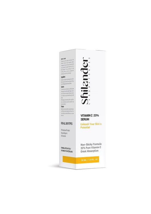 سرم ویتامین C با غلظت 20 درصد به روشن شدن پوست، کاهش لکهای تیره، تحریک تولید کلاژن، و کاهش علائم پیری کمک میکند. همچنین، خاصیت آنتیاکسیدانی قوی آن از پوست در برابر آسیبهای ناشی از رادیکالهای آزاد محافظت میکند.
