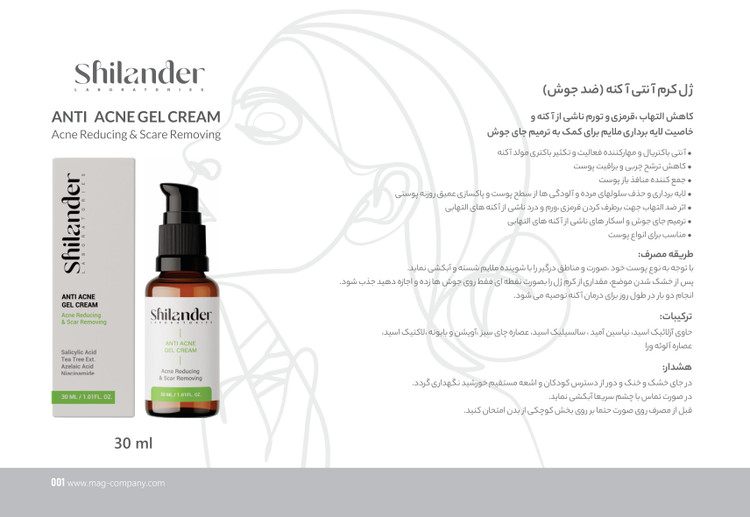 ژل کرم آنتی آکنه(ضد جوش) شیلاندر